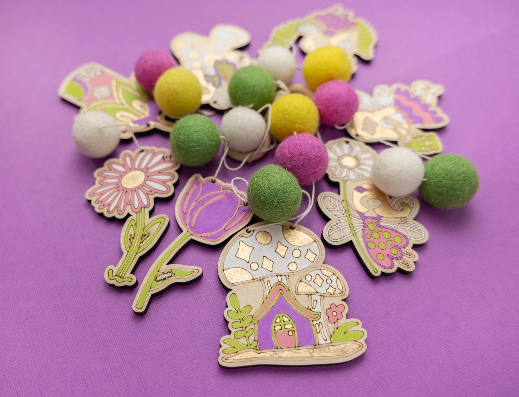 These new DIY garland kits have everything you need for hours of fun! These all-inclusive sets are perfect for crafters of all ages, offering a fun and engaging activity that results in a delightful decorative piece. Wood cutouts are just waiting to color with included paint pens. Whether you're a seasoned artist or just love a fun DIY project, these kits are perfect for you.